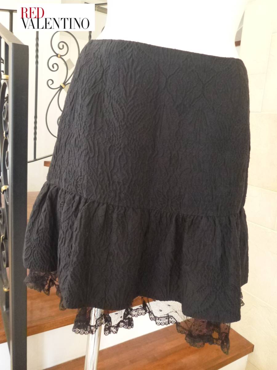 - 美品 REDValentino(レッド・ヴァレンティノ) ★黒 裾レース スカート 38 M相当
