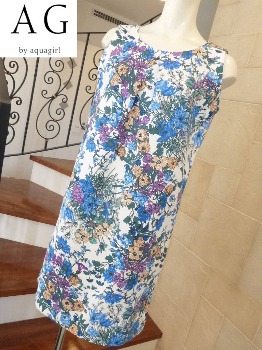 > 新品 AG by aquagirl エージーバイアクアガール AG by アクアガール ★白×緑×青×紫×黄色 花柄 ワンピース M