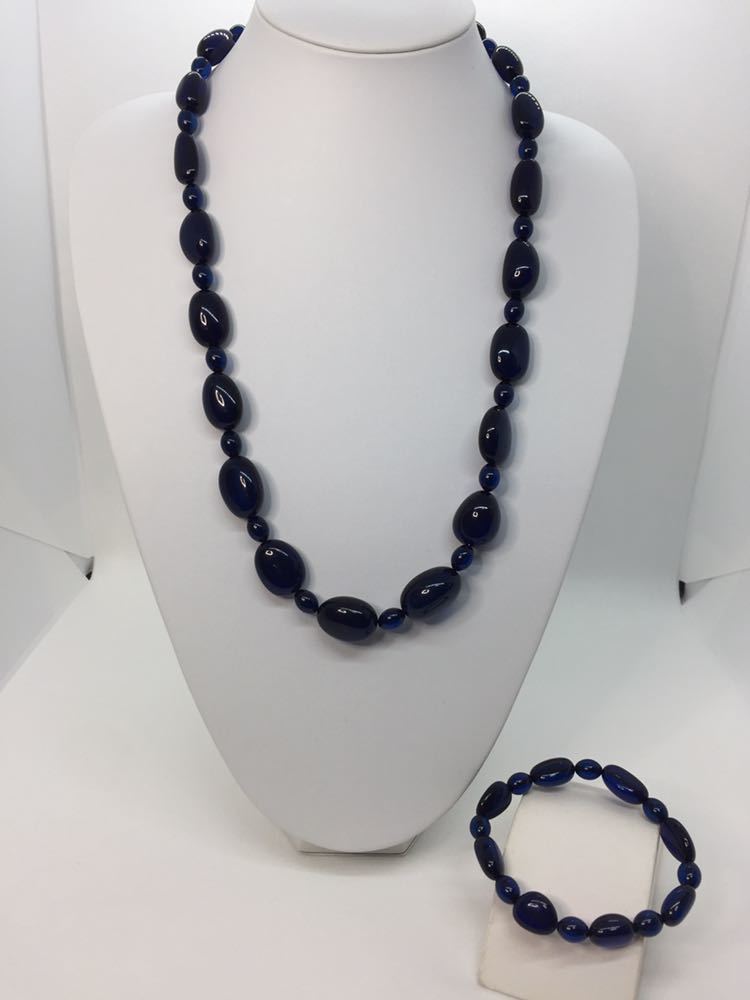 - 【新品】ブルーアンバー(琥珀)ロングネックレス・ブレスレットSET*リトアニア産*こはく*コハク*デザインネックレス*一点もの*希少