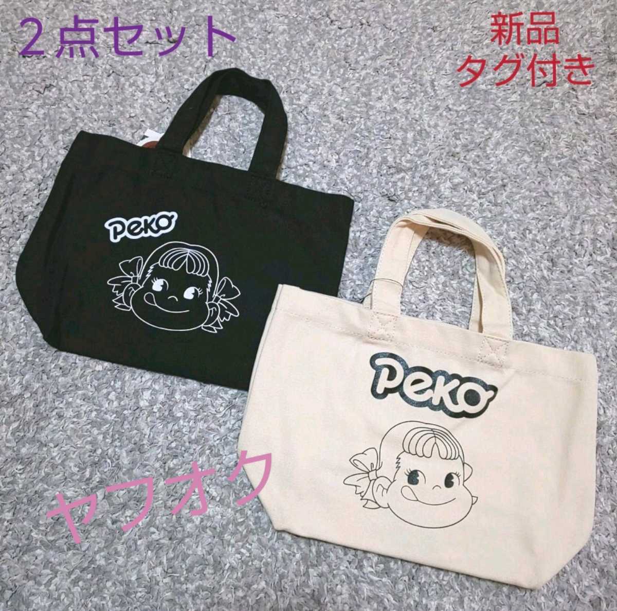 - ペコちゃん ミニトートバック2枚セット ブラック【新品・タグ付き】