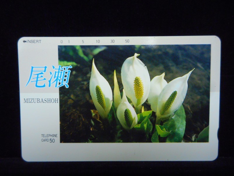 - テレカ 50度 尾瀬 水芭蕉 花 未使用 T-2444