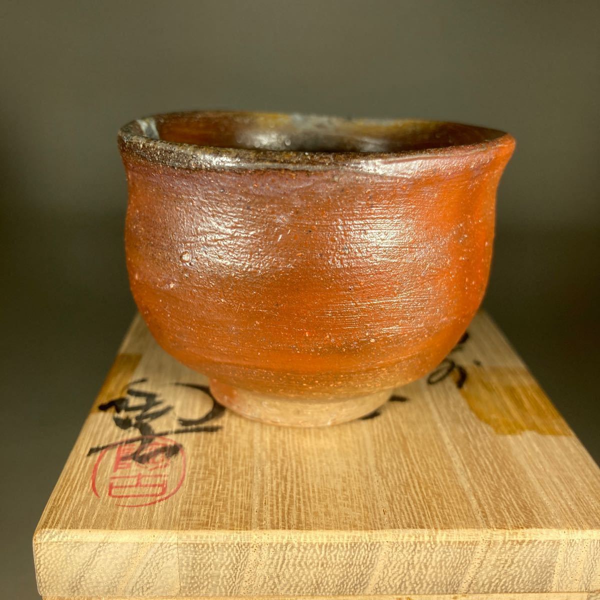 - 小西陶古作 備前酒盃 ぐい呑 酒器 共箱 888