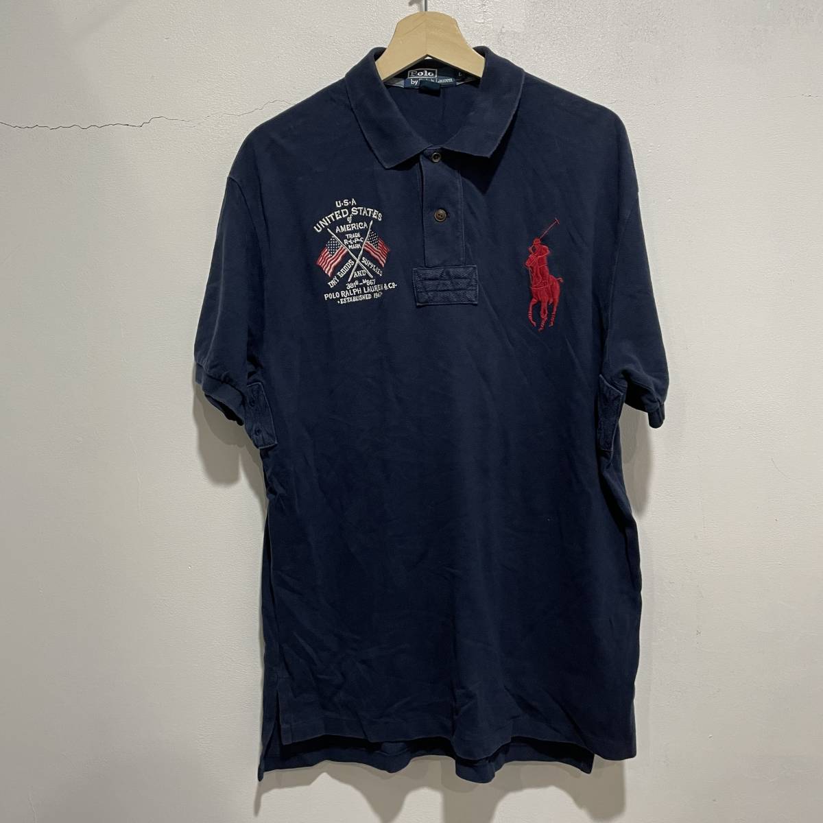> ☆送料無料☆RALPH LAUREN ☆ラルフローレン☆ポロシャツ☆ビッグポニー☆メンズL☆星条旗☆ネイビー☆E21c