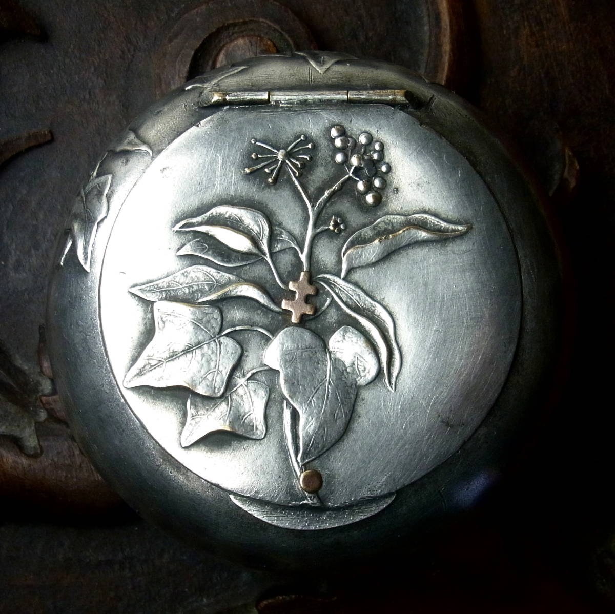 - 美 フランスアンティーク ロレーヌ十字と蔦 大きめケース ロザリオ ジュエリー入れ 蔓を伸ばすアイビー 唐草文様 Art Nouveau