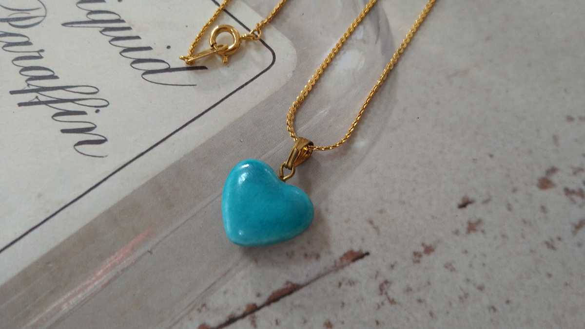 - □ターコイズブルー×ハートモチーフ・ネックレス□