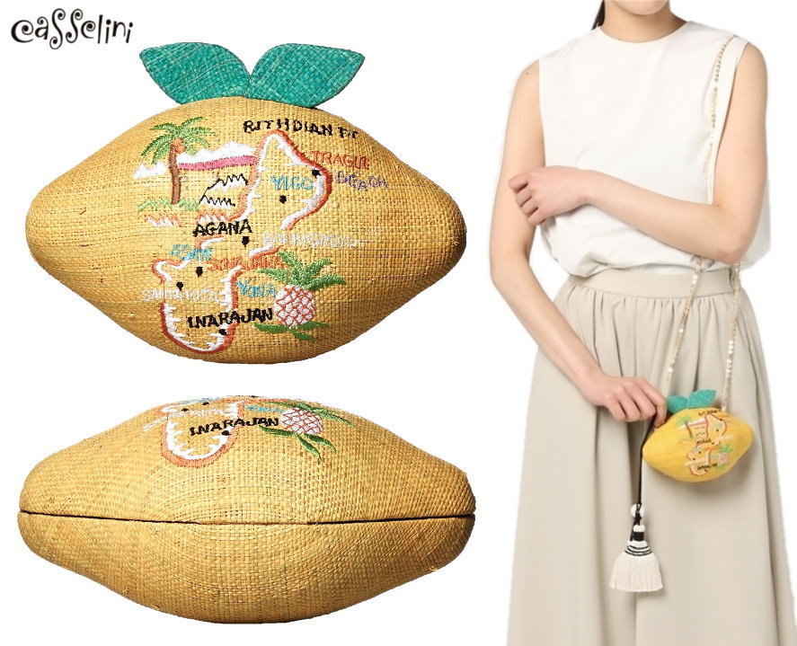 - キャセリーニ Casselini ラフィア ハンドメイド フルーツ 2way クラッチバッグ ショルダー FRUITS CLUTCH レモンイエロー