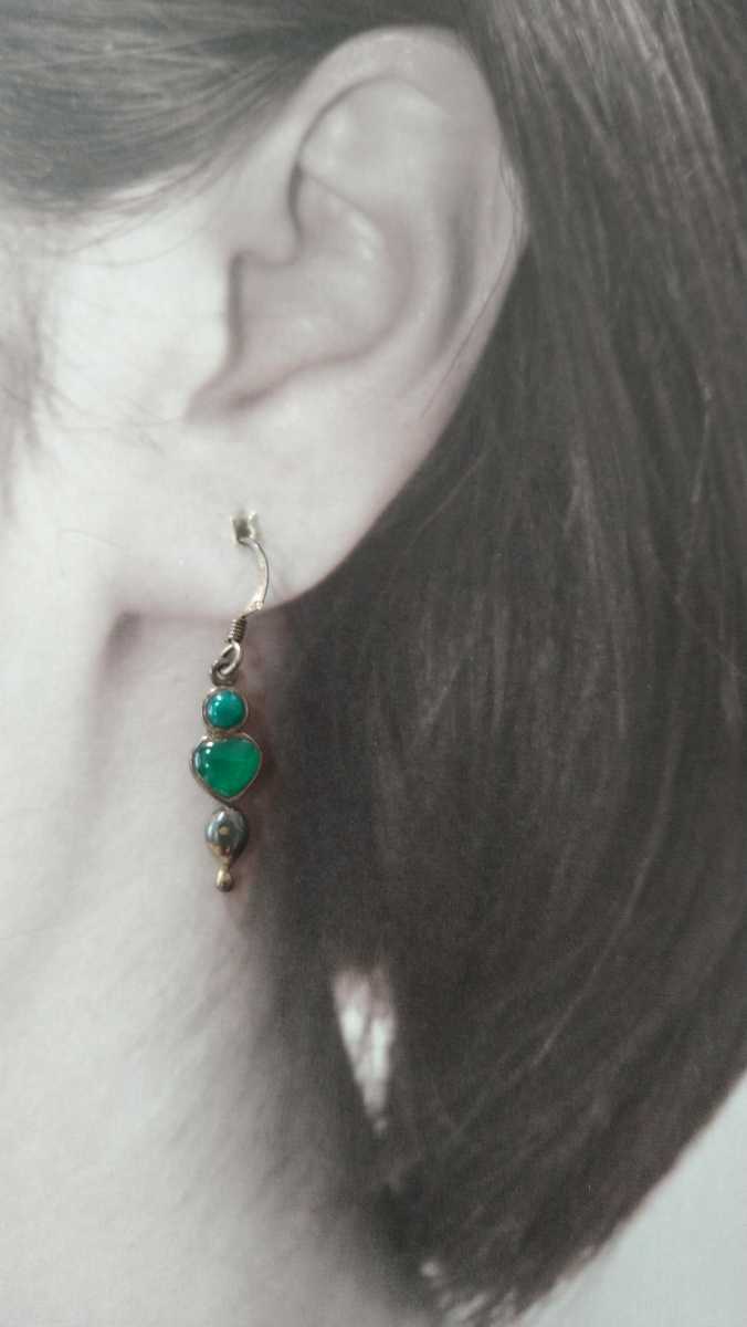 - □925刻印□緑色ビジュー×シルバーカラー・ハートモチーフ揺れるピアス□