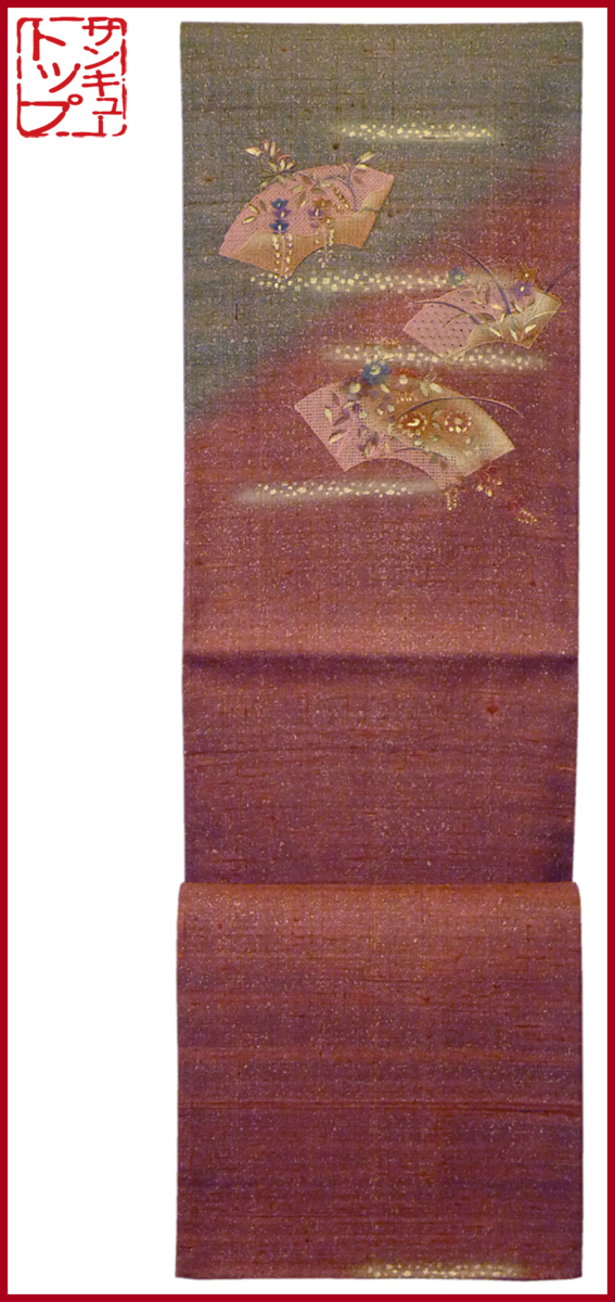 - 【店頭価格18000円の品 在庫処分 大幅値下げ】☆質:39トップ 着物館 帯 800 正絹 袋帯 紬 お太鼓柄 秋草文様 中古 気軽に締めて