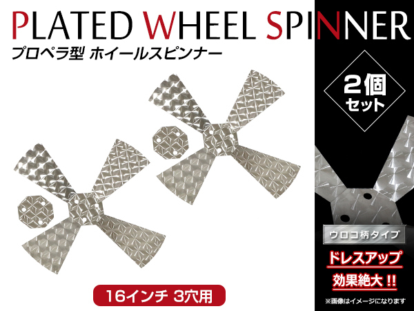 - デコトラ ホイールスピンナー 16インチ 3穴対応 プロペラ型 2個セット ウロコ型タイプ ステンレス製 レトロ トラック