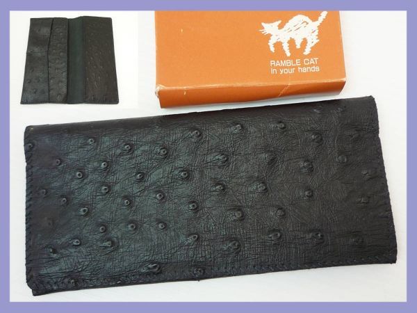 > オーストリッチ 駝鳥 ダチョウ レザー 長財布 財布 二つ折り ウォレット 黒 ブラック 箱付 お札入れ カード お洒落 お買得 必見
