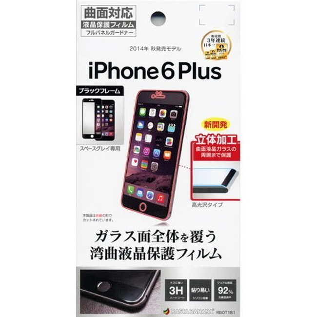 > 液晶保護フィルム ラスタバナナ iPhone6Plus iPhone6sPlus (5.5インチ)曲面対応フィルム ブラック RBOT181