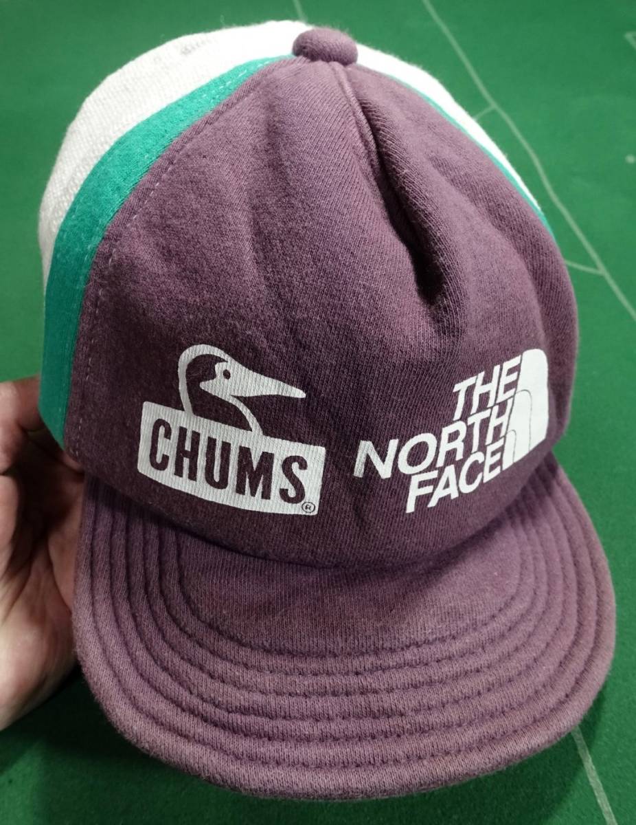 - ▲ノースフェイス x チャムス コラボ コットン素材 スウェットキャップ グレープ/グリーン/クリーム フリー 美品!!!▲