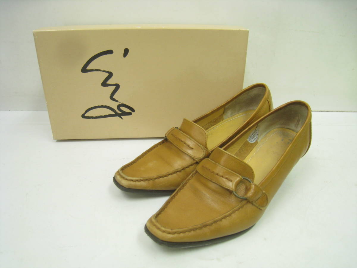 - ing イング レザー ローファー パンプス ヒール ナチュラルブラウン 茶色 サイズ22 1/2 22.5cm