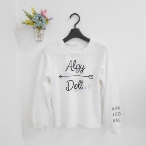 > アルジー ALGY キッズ 女の子 150cm お袖 ふんわり チュール 長袖 カットソー Tシャツ 白 ホワイト トップス