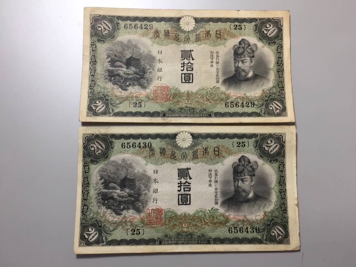 - 【注目/珍品/レア/希少/貴重】藤原20円札 最終組2枚連番
