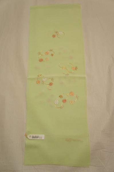 - 新品特選『渡敬』薄柳色刺繍天神唐草模様帯揚[E10278]