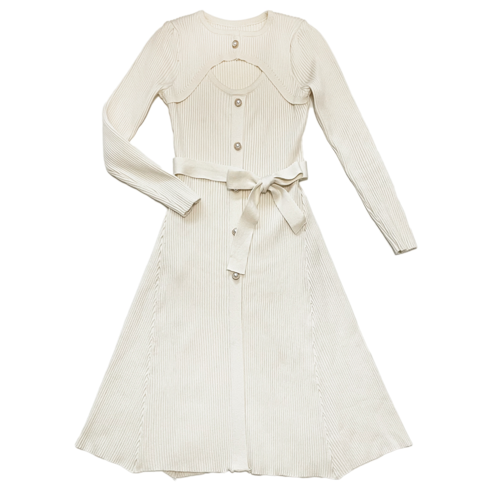 - 新品胸の小窓がセクシー 3シーズン対応リヴニットワンピース 白★