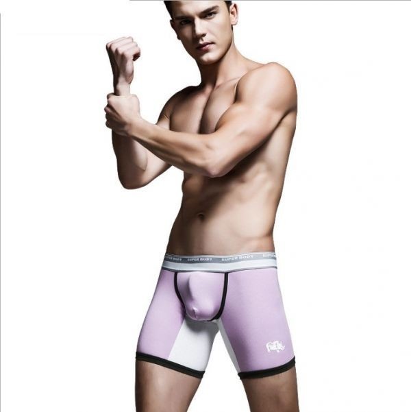 - 1円!メンズ 下着 ロングボクサー ボクサーパンツ 登山 ブランド 3dポーチ もっこり マッチョ アンダーウエア パープル E0060 L
