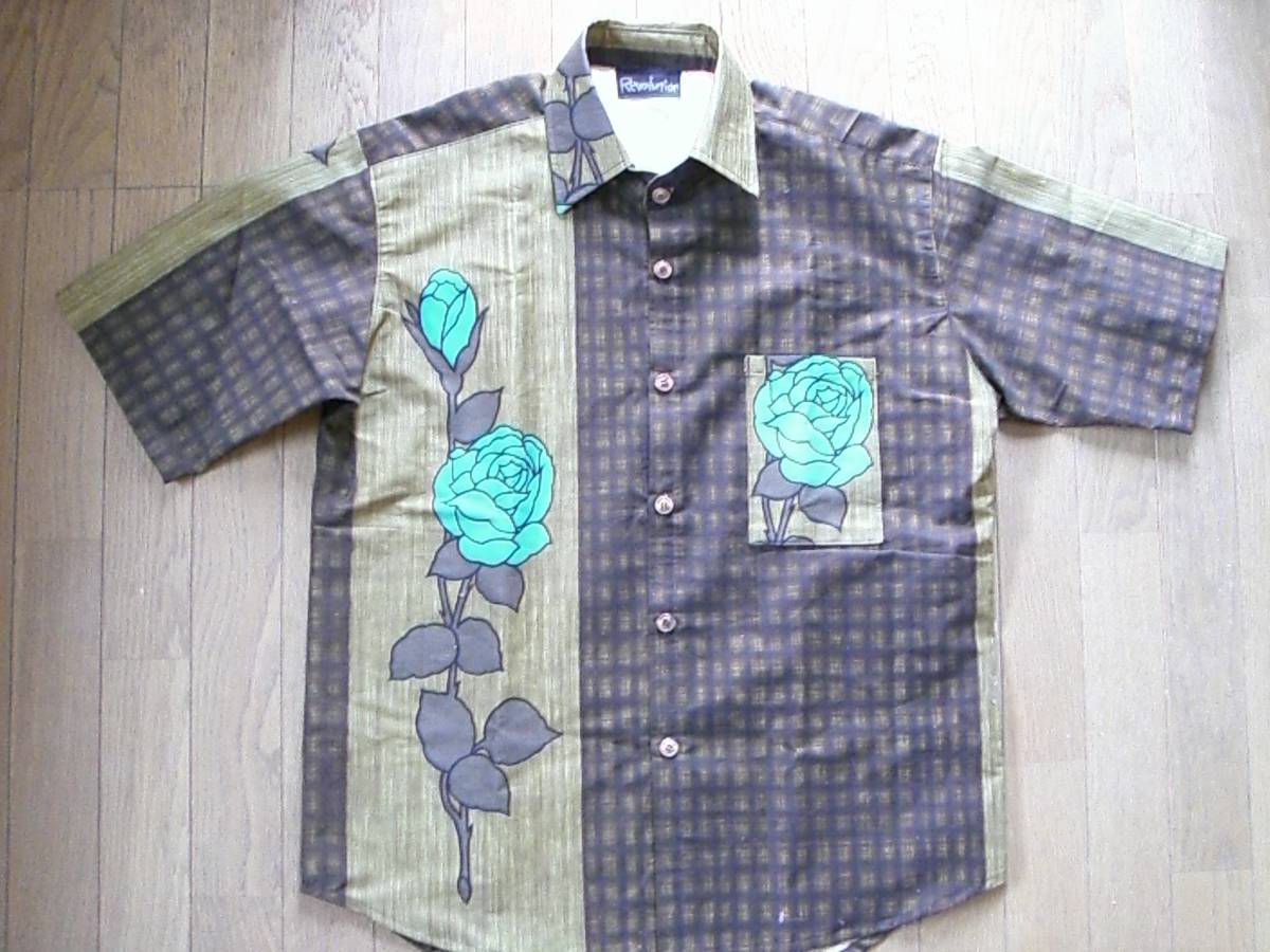 - ☆手作り☆ 和着物柄風半袖シャツ XL 未使用 送無料あり