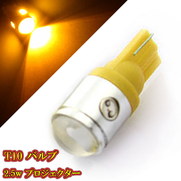- T10 バルブ LED ウェッジ球 2.5w プロジェクター ナンバー灯など 【 1個 】アンバー発光 送料無料