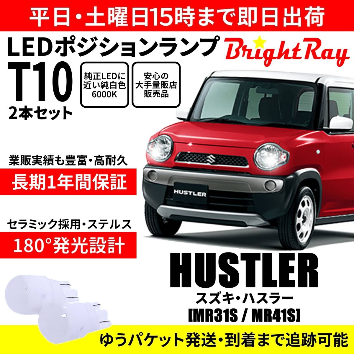 - 送料無料 1年保証 スズキ ハスラー MR31S MR41S BrightRay T10 LED バルブ ポジションランプ 車幅灯 2本セット 車検対応 ホワイト