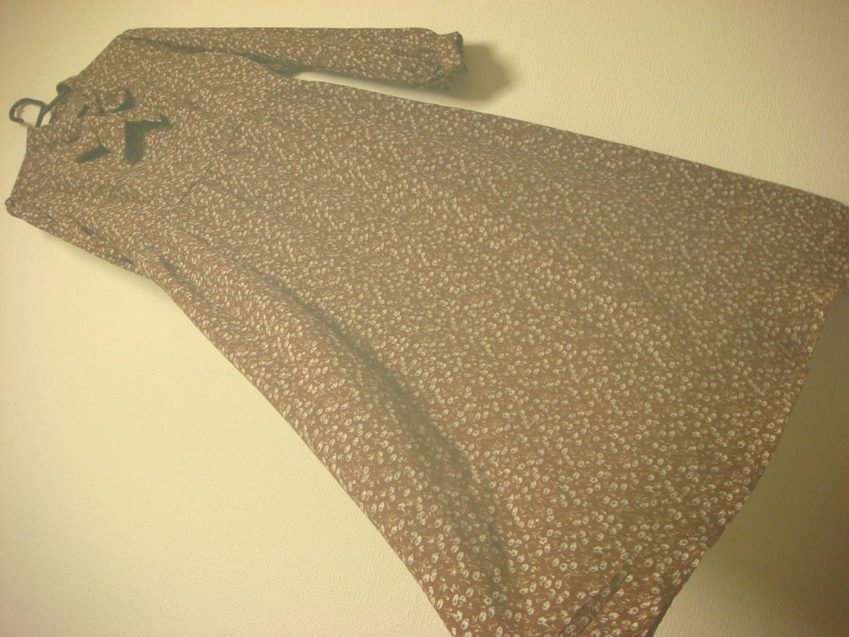 - 大きいサイズ 小花柄 おリボン付き マキシ丈 ロング ワンピース 茶 美品 L LL