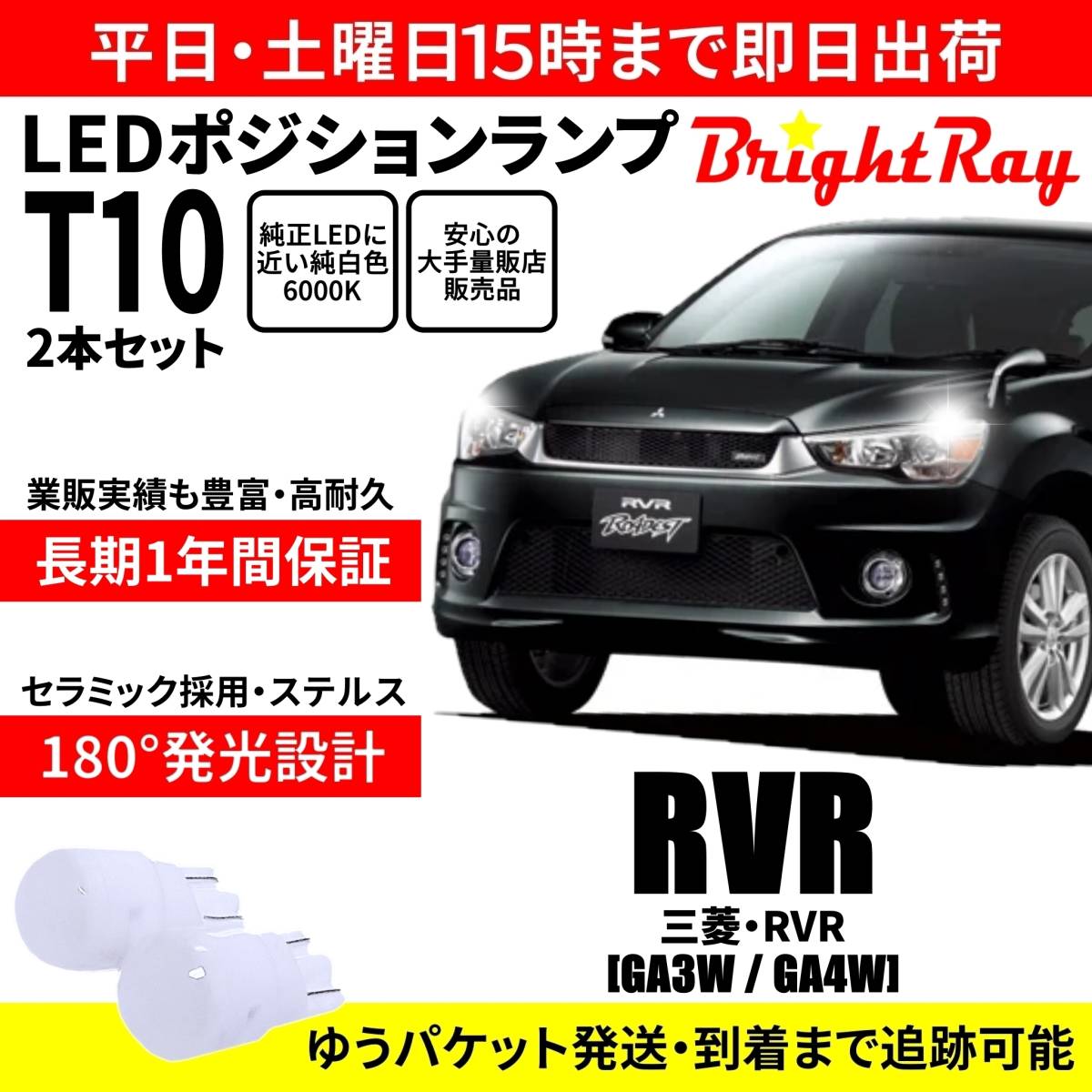 - 送料無料 1年保証 三菱 RVR GA3W GA4W BrightRay T10 LEDバルブ ポジションランプ 車幅灯 車検対応 2本セット ホワイト 6000K