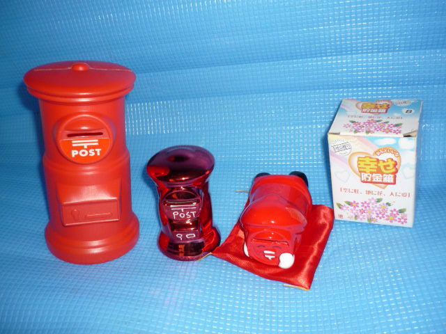 - C★未使用・非売品★レトロでかわいいポスト貯金箱17,5cmとあるといいな幸せ貯金箱他3点