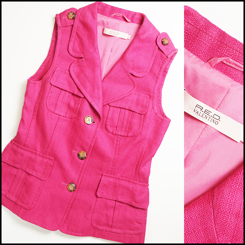 - ■美品【RED VALENTINO】レッドヴァレンティノ/鮮やかな発色がさし色にピッタリ!清潔感溢れるラミー素材サファリベスト42/L