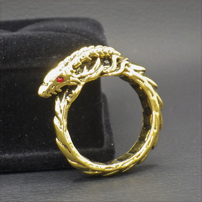 > [RING] Vintage Gold レッドアイ ウロボロス 北欧神話 お守り指輪 己の尾を噛んで飲み込む蛇 ドラゴンデザイン リング 30号 【送料無料】