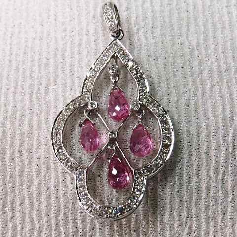 - 【値下げ交渉は質問欄より】素敵に揺れ動くピンク石!K18WG製☆可憐なデザイントップ☆上品なペンダントトップ!!