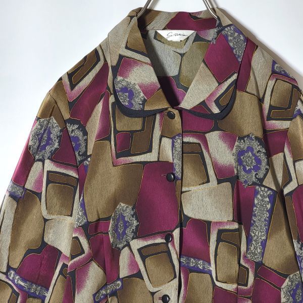 - 90s 総柄シャツ レトロ ブラウス 長袖 トップス レディース 派手 奇抜 ポリシャツ