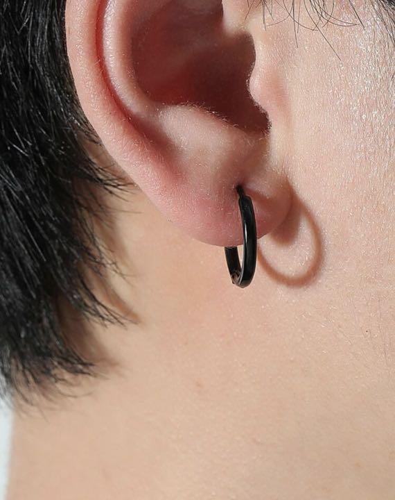 - 【ピアス】シンプルフープピアス ブラック リング メンズ 片耳用 韓国ファッション ストリートファッション 古着 ワンポイン