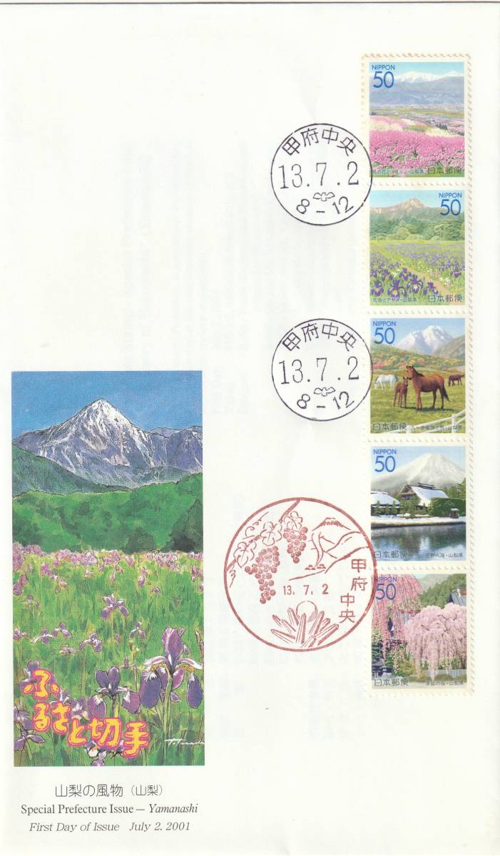 - FDC 2001年 山梨の風物 50円5貼 JPA