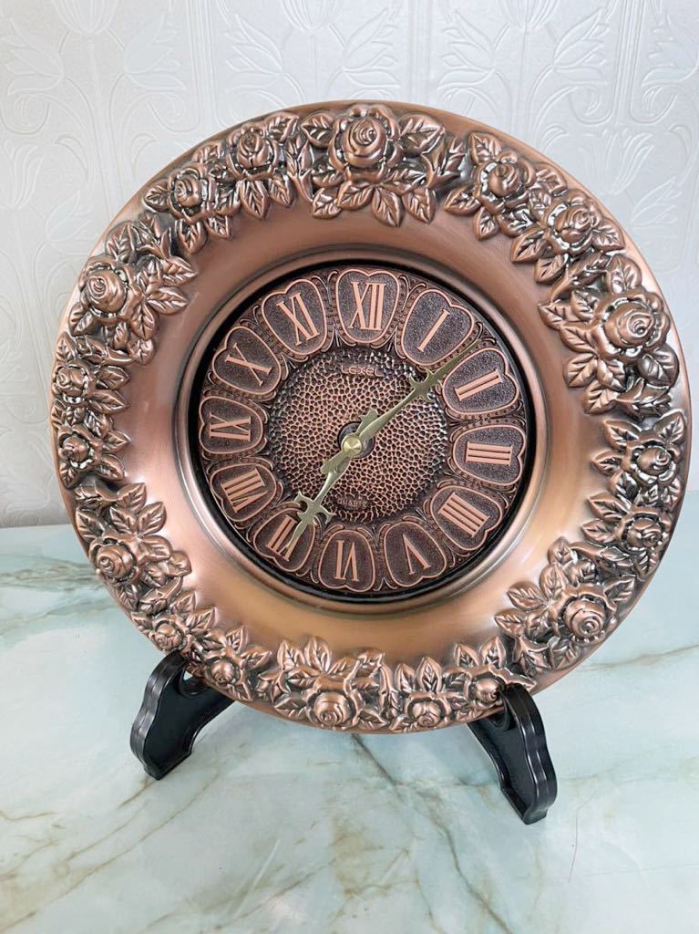 - 銅製置時計 掛時計 台座付き 裏面名入有 lexel クオーツ 花柄模様 日本製 copper アナログ おしゃれインテリア 北欧風 CLOCK 壁掛け時計