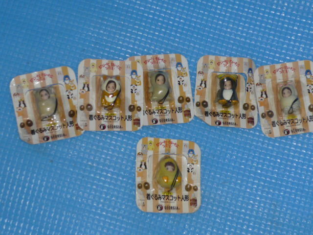 > E★未使用・非売品★ジョージア カフェレーチェ&モカレーチェ着ぐるみマスコット人形(ストラップ) ×6点(仲間由紀恵5種と山田花子1種)