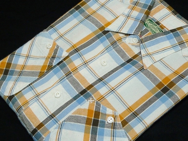 - 美品東洋SUGAR CANE Light(SC35032)半袖ハニカムチェックワークシャツM白x橙チェック\8690