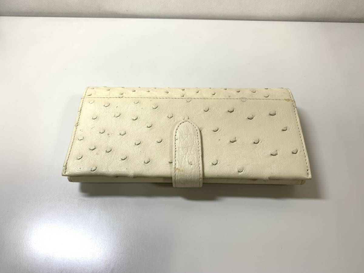 - 【質屋 尾張屋商店 東京】オーストリッチ 本物 2つ折り長財布 ベージュ