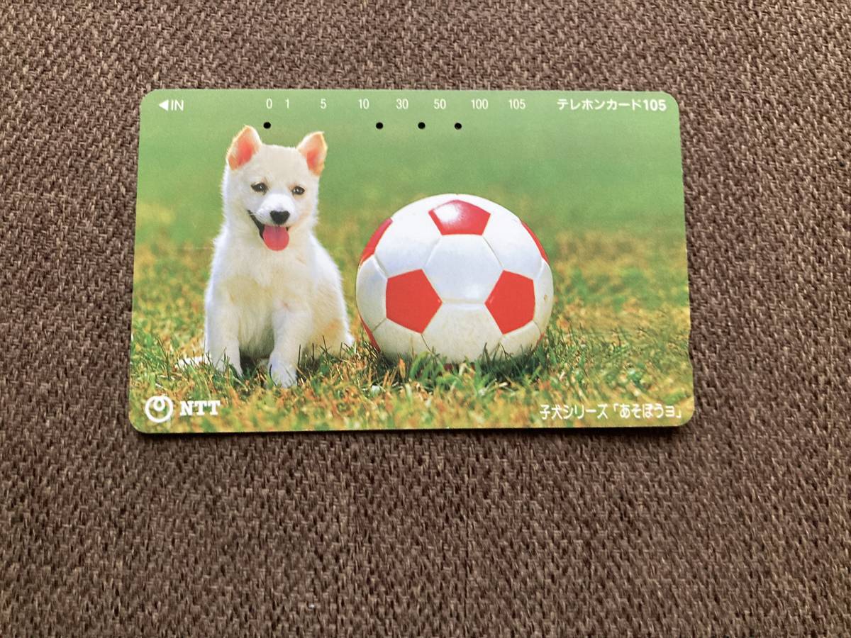 - ★使用済み テレホンカード 子犬シリーズ 「あそぼうヨ」 いぬ サッカーボール 動物 テレカ 105度数 NTT ミニレター