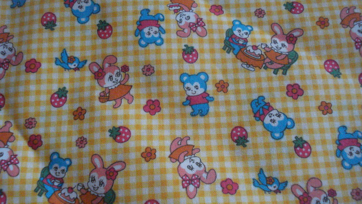 - ◆「レトロアニマル・チェック」(黄色)約50㎝×約50㎝/・レトロアニマル・メルヘン◆くまちゃん・うさぎちゃん