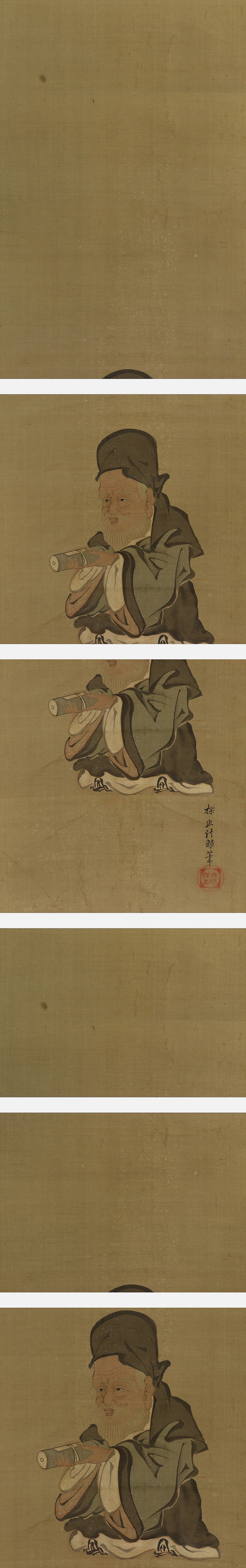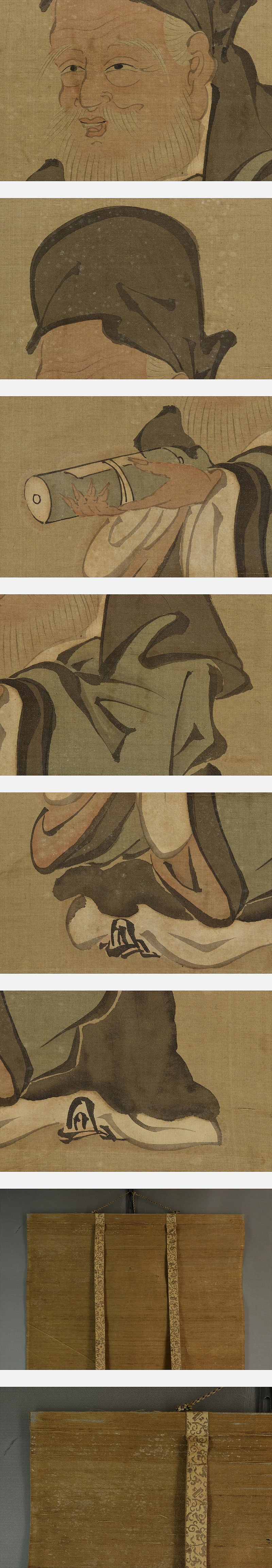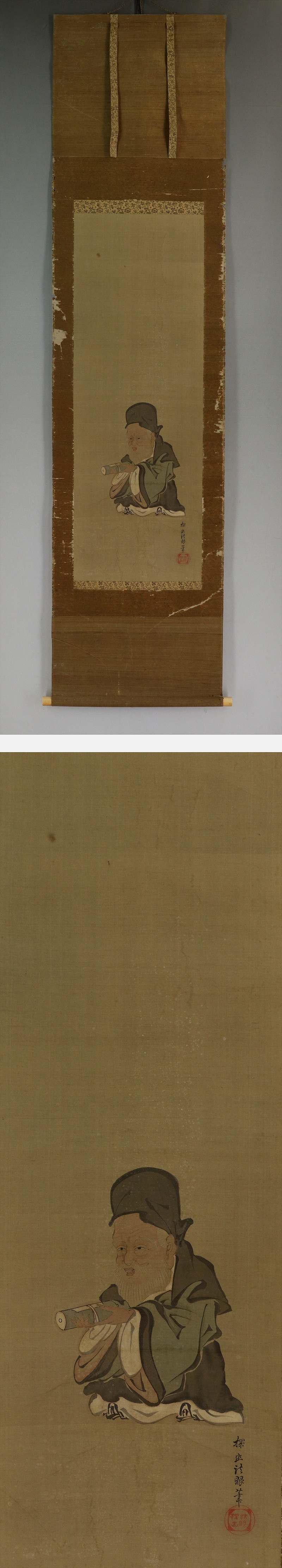 - 【真作】狩野探幽【福禄寿】◆絹本◆合箱◆掛軸 u04141