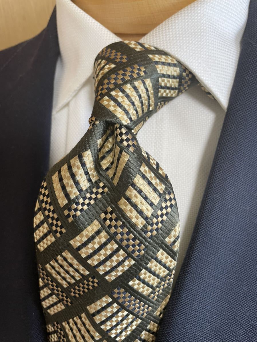 - 【希少】ヴィンテージ 三松商事日本製シルクネクタイ 大剣約9.5cm グリーン基調 幾何学模様 市松模様