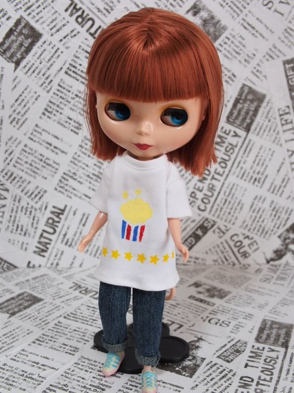 > ハンドメイド*ブライス/リカちゃんサイズお洋服セット人形/アウトフィット/衣装/ドレス/ビッグTシャツ/デニムパンツ/レトロ/手作りドール服