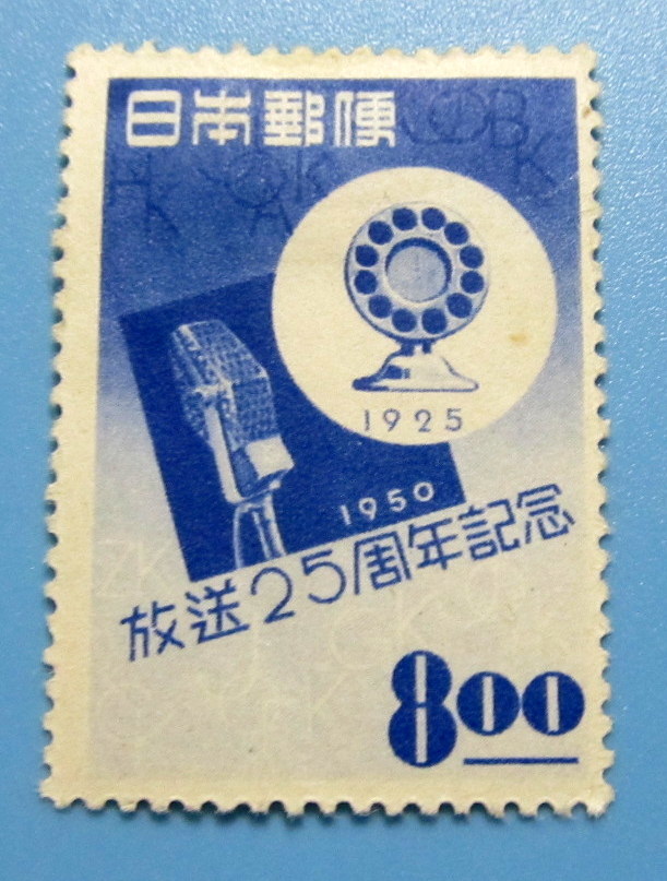 - 1950年 放送25周年記念 8円 ヒンジ跡 裏のり 折れ 未使用