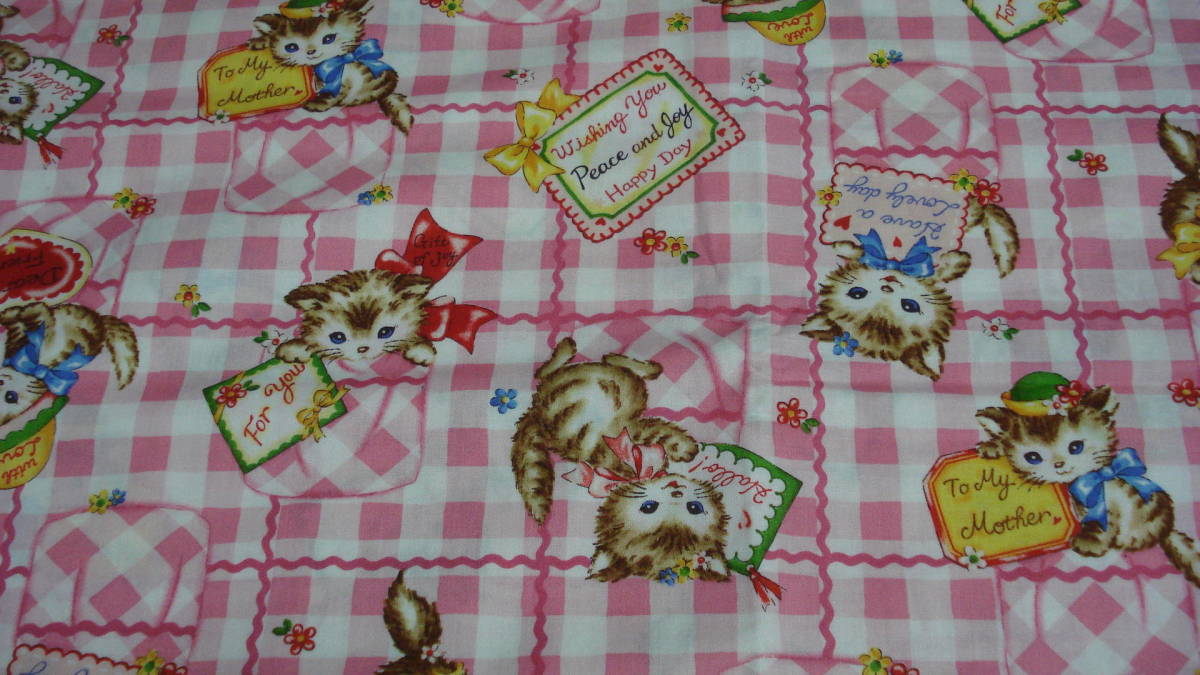 > ★キルトゲイト「QUIT GATE 子猫チェック(ピンク系)」約50㎝×30㎝・レトロアニマル・メルヘン★