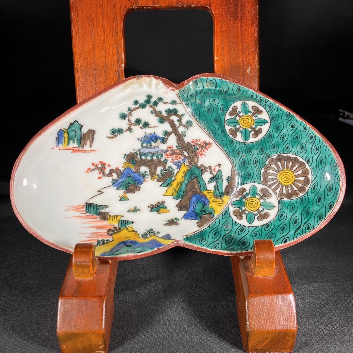 - 九谷焼 山海風景 珍品 菓子皿 飾皿 九谷 古九谷 888