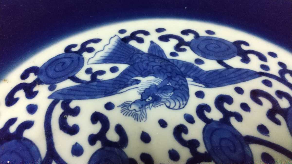 - 古い 中国皿 中国古玩美術 大皿37cm 染め付け 中国 古玩 古 古美術