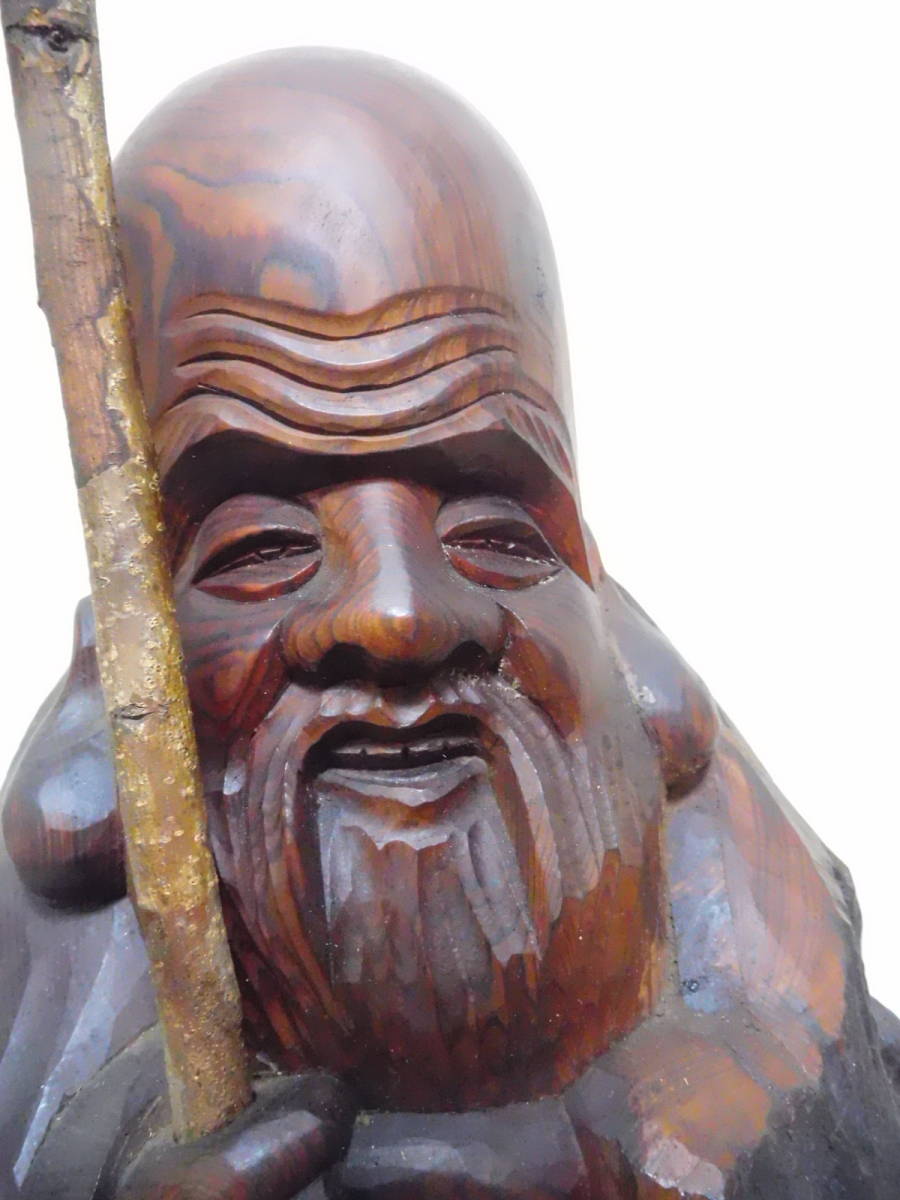 - Z5-510ふ 置物 木彫 老人 中古 高さ約46.7cm(頭まで) (和押し横)