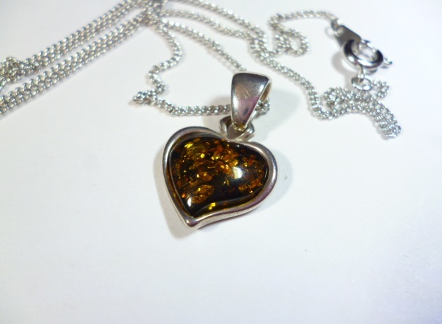 - ∞ 琥珀 ヴィンテージ ペンダント ネックレス 刻印あり ∞ ハート アンバー