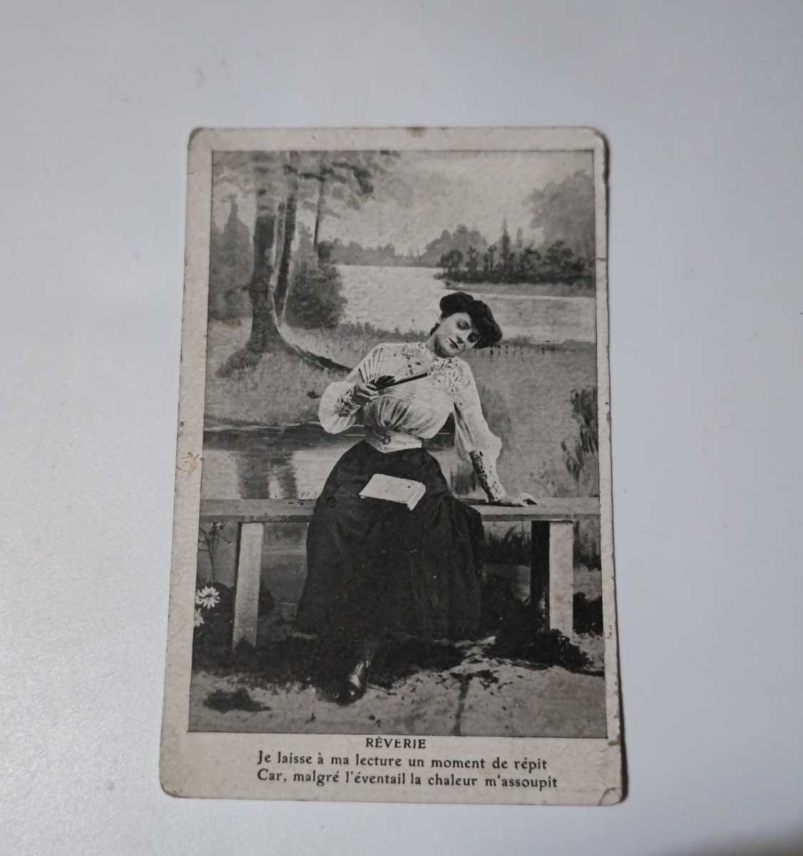 - 送料無料!アンティーク ポストカード ベンチに座る貴婦人 絵葉書 フランス